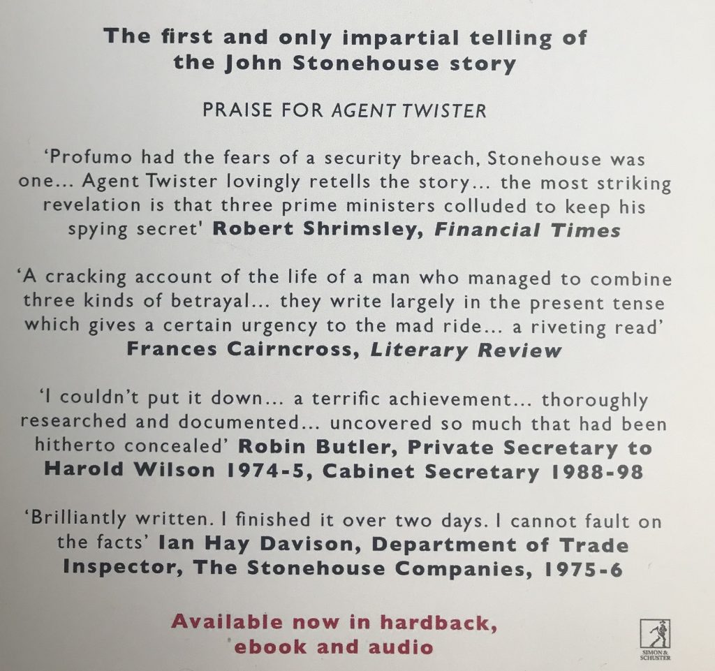 Below are some cuttings with regard to John Stonehouse and our book Agent Twister.